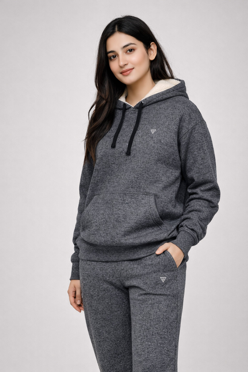 GUESS Unisex Heather Grey Fleece Track Trouser premium quality fleece fabric se bana hua hai jo straight fit aur loose bottom ke sath maximum comfort deta hai. Ye trouser men aur women dono ke liye design kiya gaya hai aur winter wear, lounging aur casual use ke liye ideal hai. GUESS hoodies aur sweatshirts ke sath perfect match karta hai.