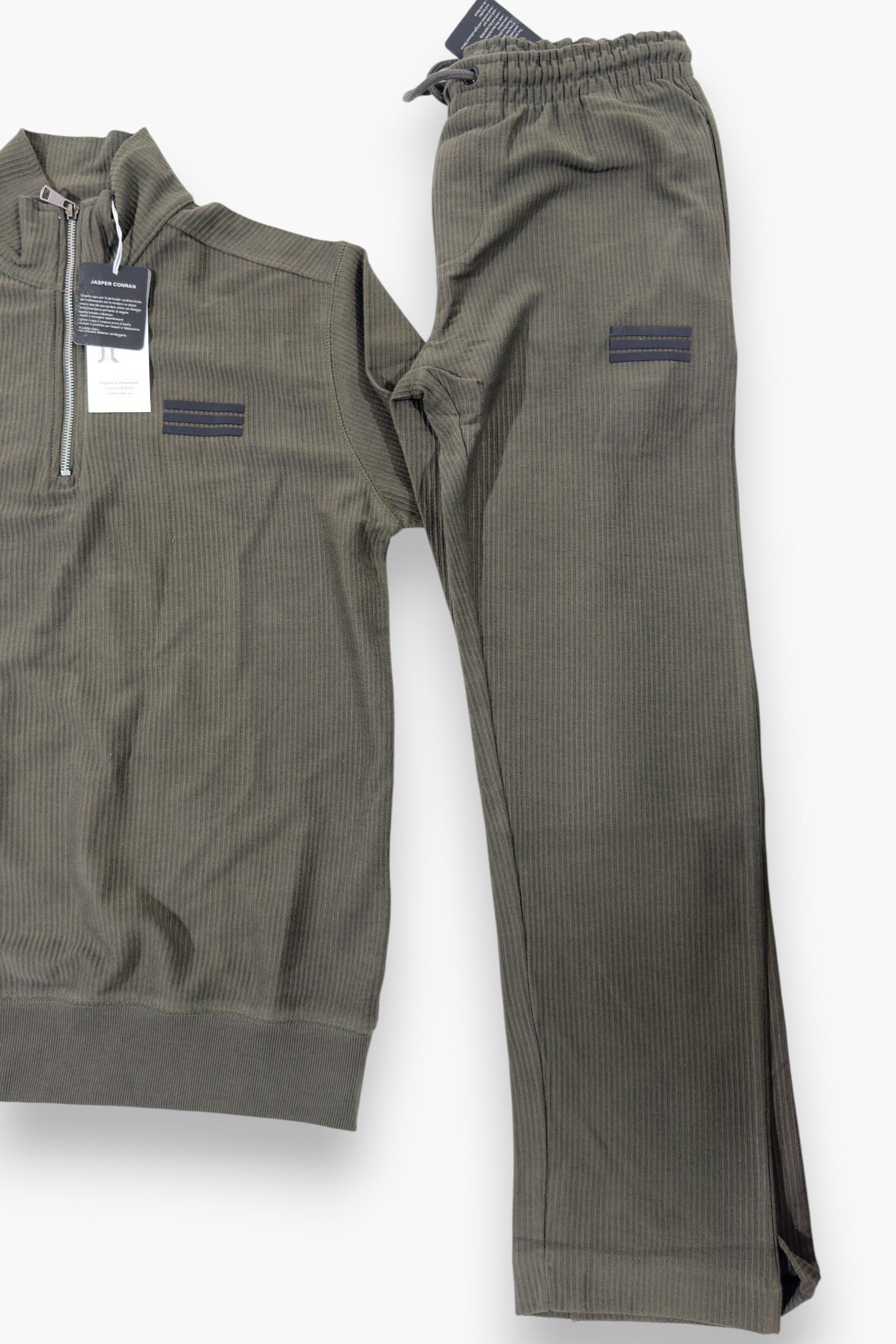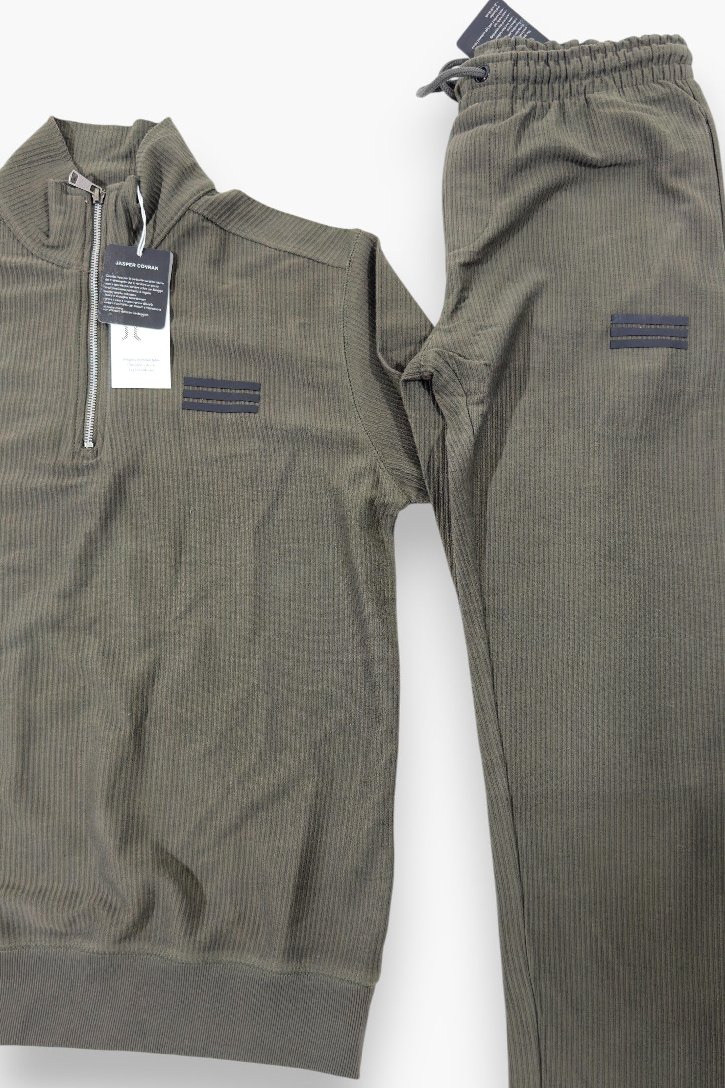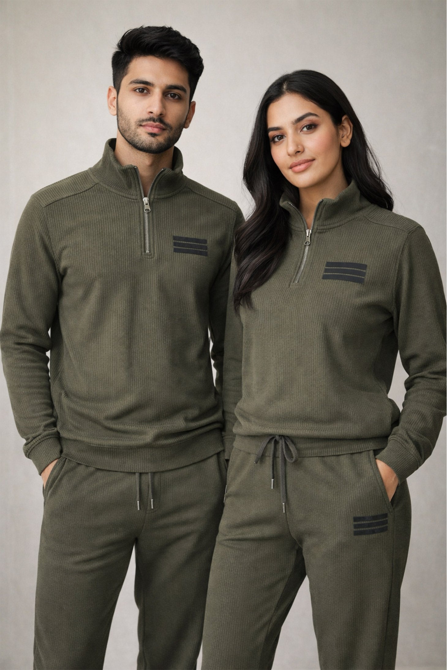 Jasper Unisex Ribbed Half-Zip Tracksuit – Olive Green (Export Leftover)